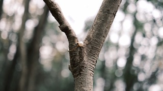 A video featuring a pearl ring delicately threaded onto a tree branch.